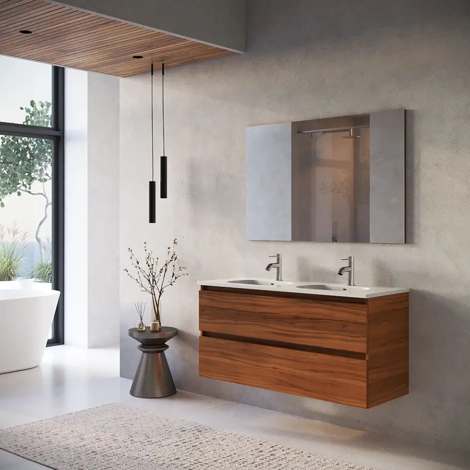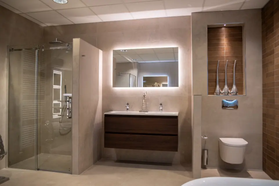 Denk ook eens aan de volgende toevoegingen: spiegelkast dubbelspiegelend, hoge of halfhoge kolomkast, spiegels met geïntegreerde LED-verlichting of gewoon een opbouw LED spot, wandpanelen met blinde bevestiging en een matching WC meubel in dezelfde kleur.